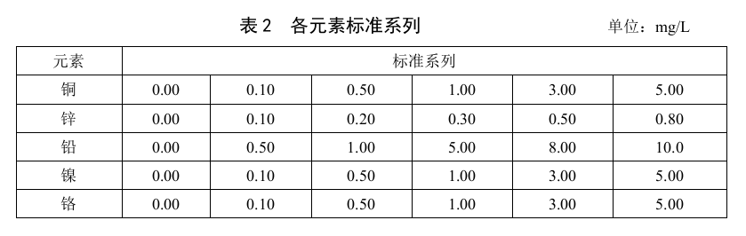 本標準適用于土壤和沉積物中銅、鋅、鉛、鎳和鉻的測定。當取樣量為0.2g、消解后定容體積為25 ml時,銅、鋅、鉛、鎳和鉻的方法檢出限分別為1 mg/kg、1 mg/kg、10 mg/kg、3 mg/kg和4 mg/kg,測定下限分別為4 mg/kg、4 mg/kg、 40 mg/kg、12 mg/kg和16 mg/kg。
