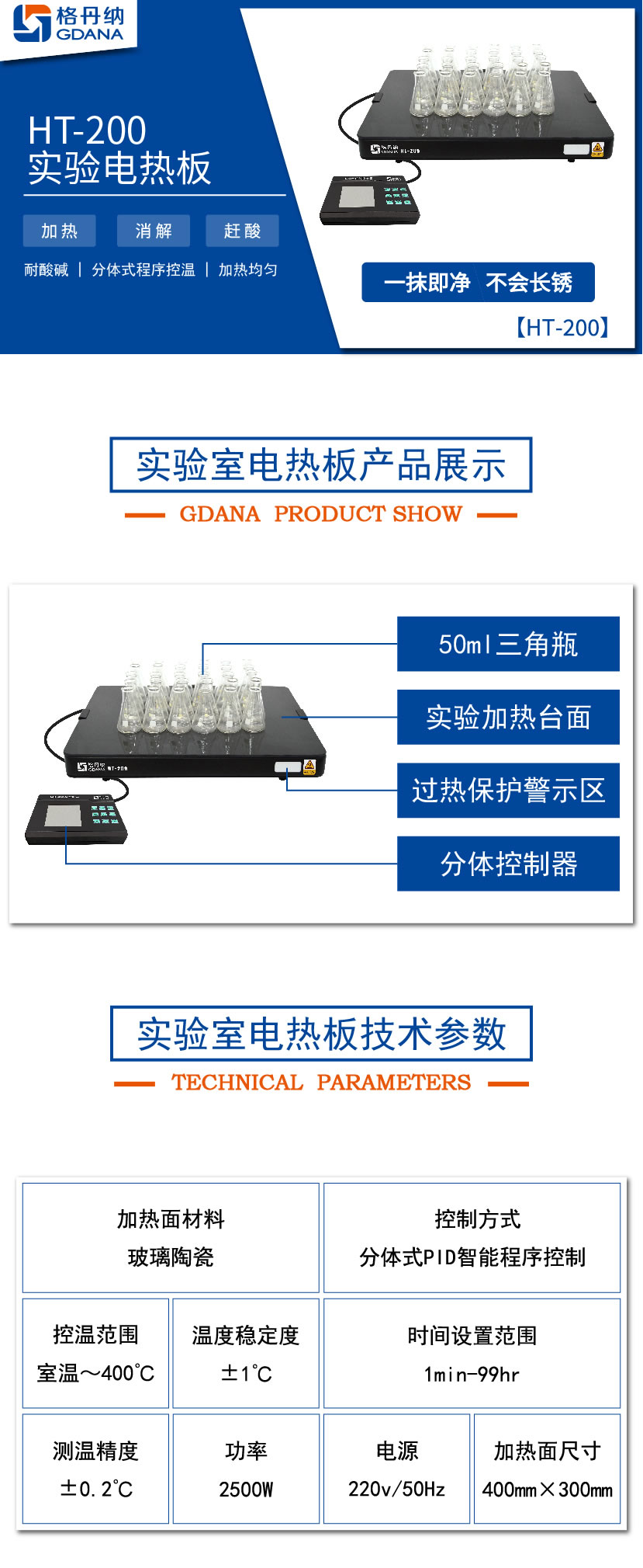5.鉑金電阻精確控溫,升溫快速、加熱均勻,溫度可達400℃。