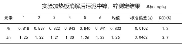 由上面表中可以看出,污泥中的鎳、鋅濃度均處在較低水平,6次測(cè)定結(jié)果的精密度和準(zhǔn)確度均較好。