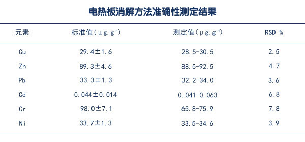 電熱板消解方法準(zhǔn)確性測定結(jié)果