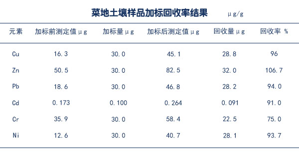 菜地土壤樣品加標(biāo)回收率測定結(jié)果
