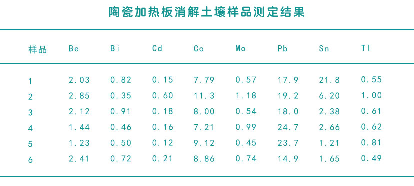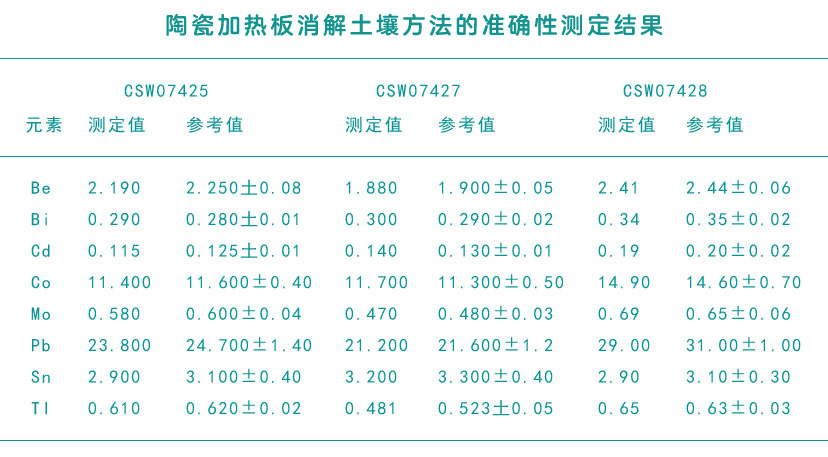 陶瓷加熱板消解土壤樣品測(cè)定結(jié)果